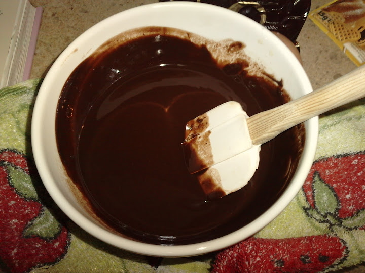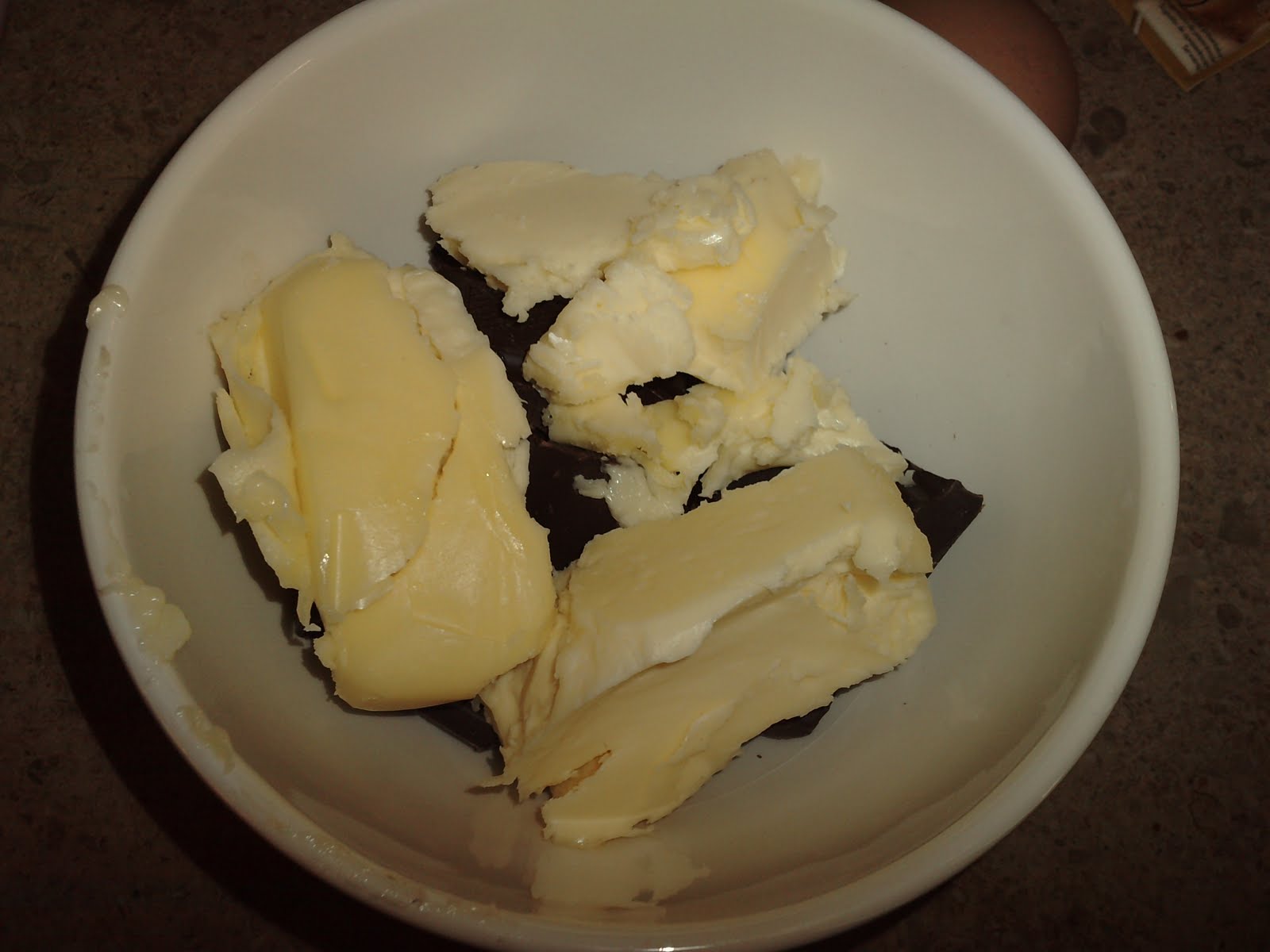 Isto é o que diz na receita, mas eu fiz desta forma, coloquei o chocolate numa bacia grande com a manteiga e levei ao microondas 1m, 700w.